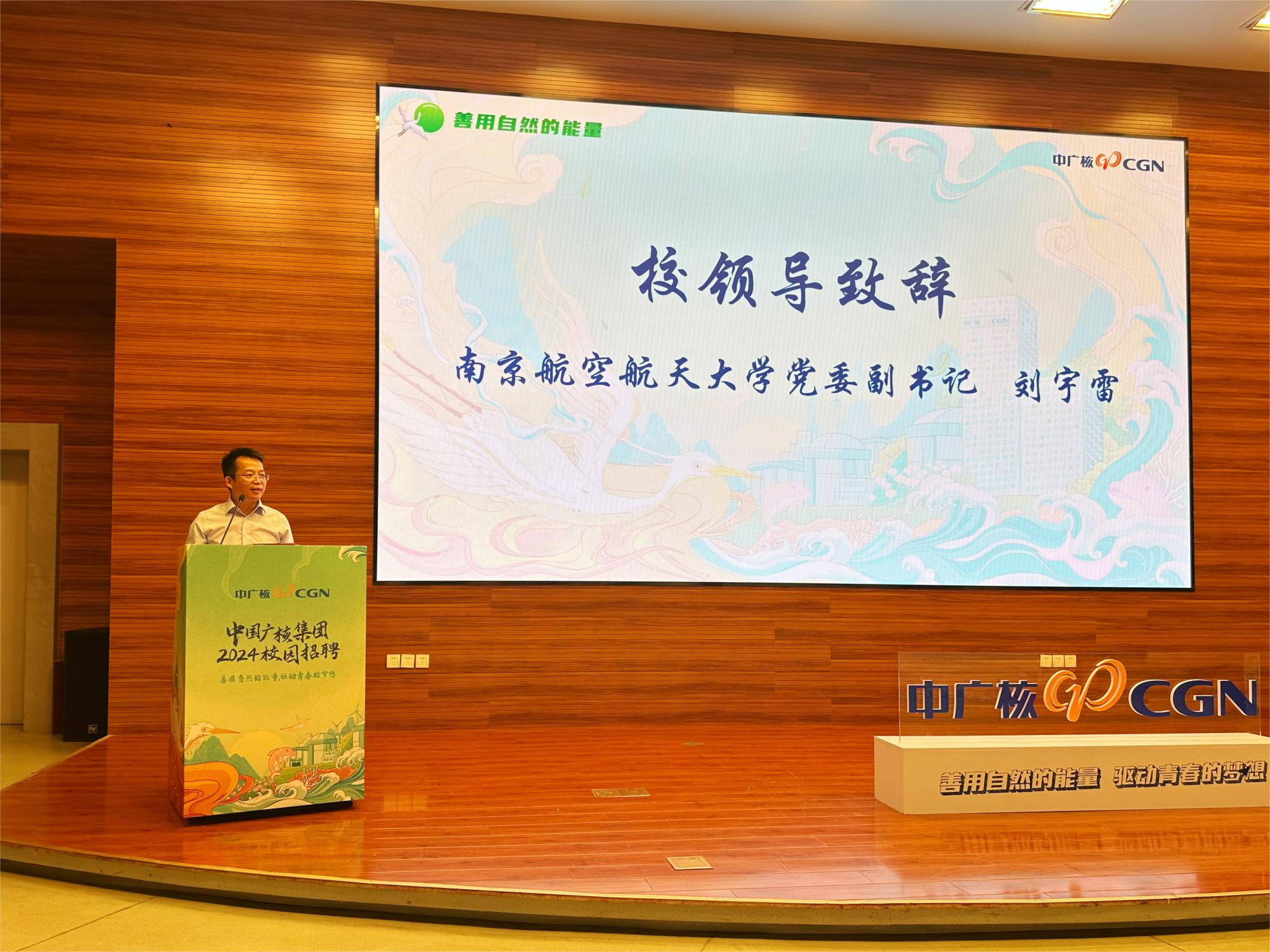 刘宇雷代表学校向中广核招聘组的到来表示欢迎,对中广核对南航的信任、对毕业生的青睐表示感谢。南航与中广核在科技创新、人才培养、学术交流等领域有着多维度、多层次的合作,希望南航学子将个人选择融入国家发展,为服务国家能源战略需要和国民经济建设贡献青春和力量。