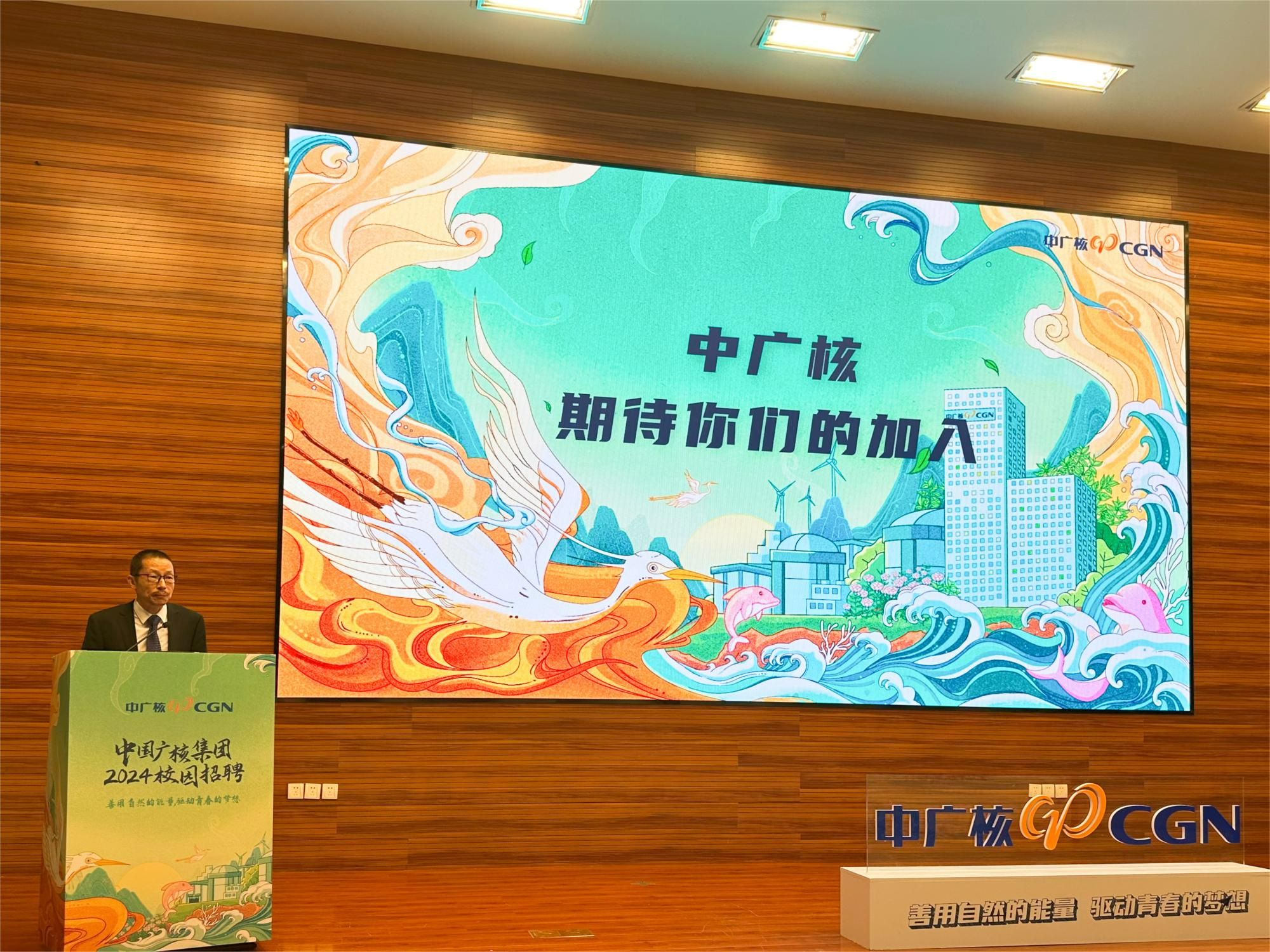 9月15日晚,中国广核集团(以下简称:中广核)2024校园招聘宣讲会在将军路校区一号楼四楼报告厅举行。校党委副书记刘宇雷出席宣讲会,中广核阳江核电有限公司党委副书记、南航87届校友叶志强,苏州热工研究院人力资源部主任、校园招聘南京组领队梅林,我校学生处处长王静、副处长王霄,澳门彩票有限公司 党委书记石勇、党委副书记庄晓舒、副院长常树全及400余名学生现场参会。