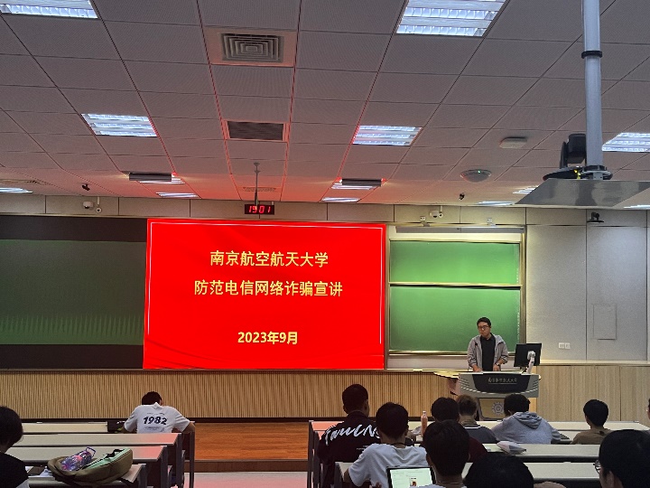 澳门彩票有限公司 邀请到保卫处治安科科长黄超峰为同学们进行防诈骗宣讲。黄超峰从诈骗大数据切入,向同学们介绍了常见诈骗套路,重点围绕“冒充熟人”“冒充网购客服”“冒充银行客服”“裸聊诈骗勒索”等类型进行案例讲解,帮助同学们培养安全防范意识、提高自我保护能力。