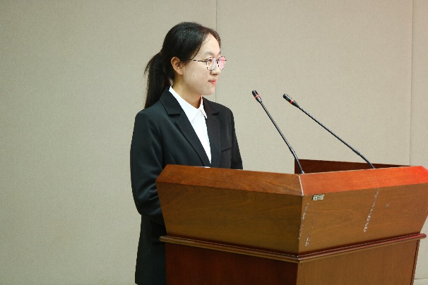 062300204田晓蒙同学:“原来优秀真的可以具象,一年时间可能很短,或许不足以我们适应新生活;但一年时间也很长,足以达到专业第一的高绩点、100+的志愿时长和科创领域的涉足,韩璐学姐以自己生动的经历告诉我们,一年也可以拥有丰富的履历和优异的成绩。看完学长学姐的答辩之后,我对自己大学的规划更清晰,希望未来也能修炼成为‘六边形战士’,最终站在这个舞台。”