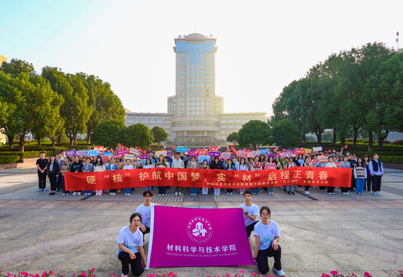 江苏省“挑战杯”红色专项活动一等奖获奖团队“马兰之声”四名成员在国旗下做“云腾大漠上,花绽马兰盛”主题诗朗诵。“马兰之声”实践团队跨越3600公里,辗转48个小时,奔赴新疆,追寻那座名为“马兰”的精神地标。五十九年前的今天,马兰人为祖国献上惊天动地的重礼。五十九年后的今天,材料学子在“马兰之声”团队的带领下,面向五星红旗庄严宣誓:干惊天动地事,做隐姓埋名人。传承红色基因,放飞蓝色梦想。努力成为马兰精神实践者,争做材料强国接班人!