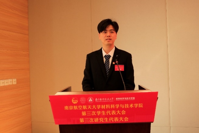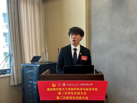 田家祥代表校研究生会对本次大会的召开表示祝贺。他对院研究生会开展的各项工作给予了充分肯定,希望研究生会持续在思想共鸣上把握方向,用榜样力量催人奋进,助力青年学生全面发展。
