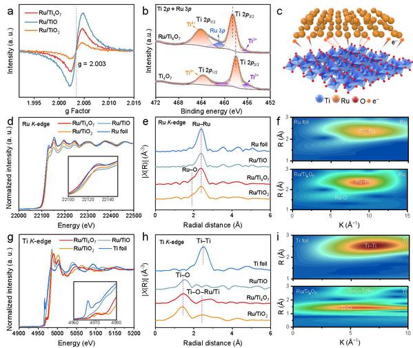 研究团队通过湿化学方法将Ru纳米颗粒(NP)沉积在具有不同化学计量比(TiO、Ti4O7和TiO2)的氧化钛载体上,Ti4O7可以与Ru NPs实现合适的界面晶格接触,这为自适应金属-载体相互作用和快速界面电子迁移提供了可能性。
