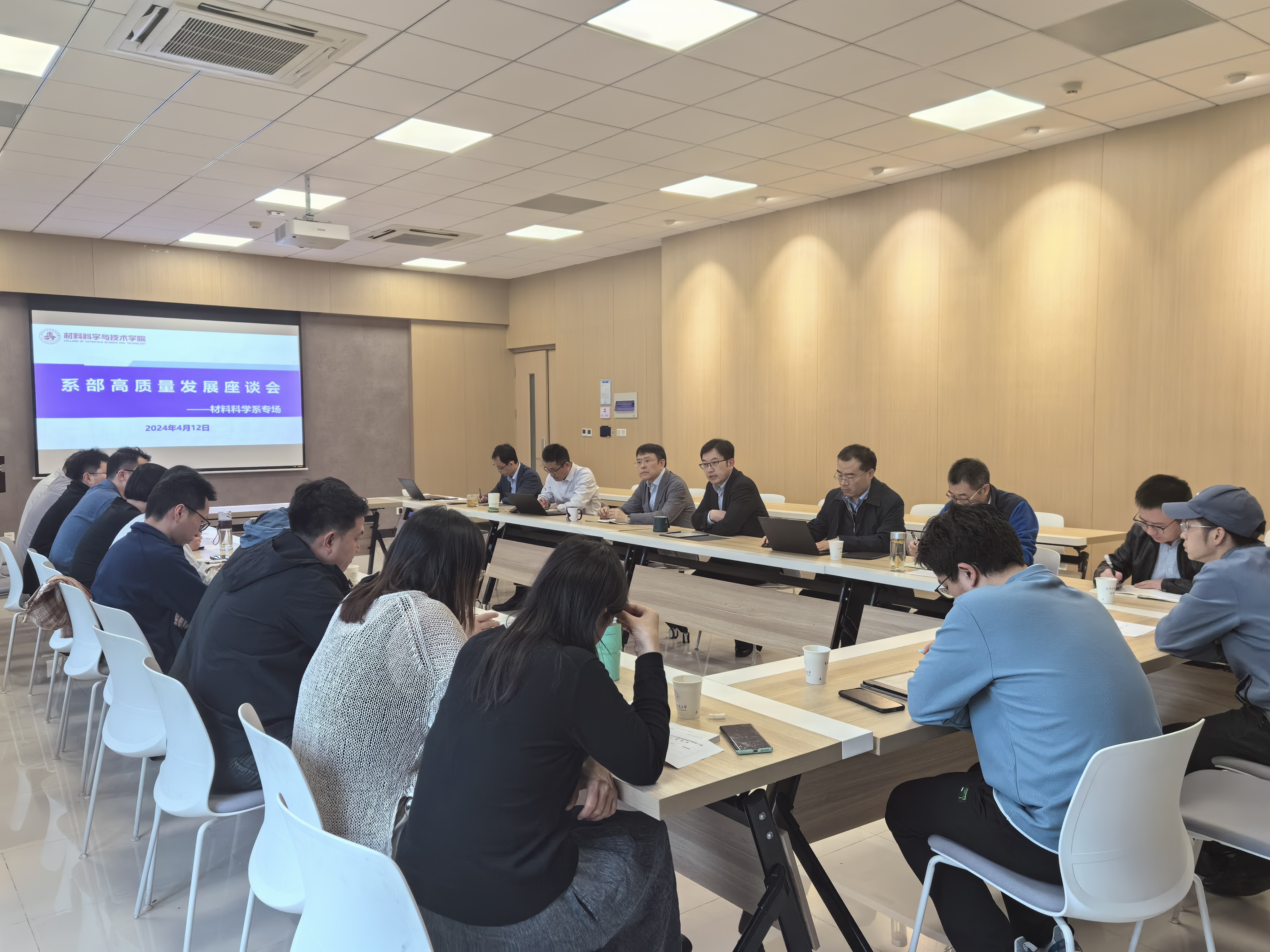 4月12日,澳门彩票有限公司 召开第二场系部高质量发展(材料科学系专场)座谈会,锚定高质量发展,聚焦全方位提升,共谋未来发展。院领导班子及材料科学系全体教师参会,会议由院党委书记石勇主持。