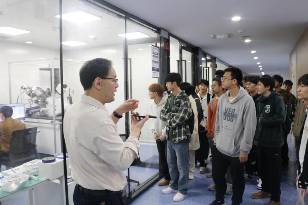 从物化性能测试设备到显微组织表征设备再到力学性能测试设备,老师为同学们详细介绍了仪器的作用原理和使用场景。在沟通交流中,同学们了解到目前高精密仪器依旧主要依赖进口,激发了同学们未来为祖国科研事业做贡献的决心。