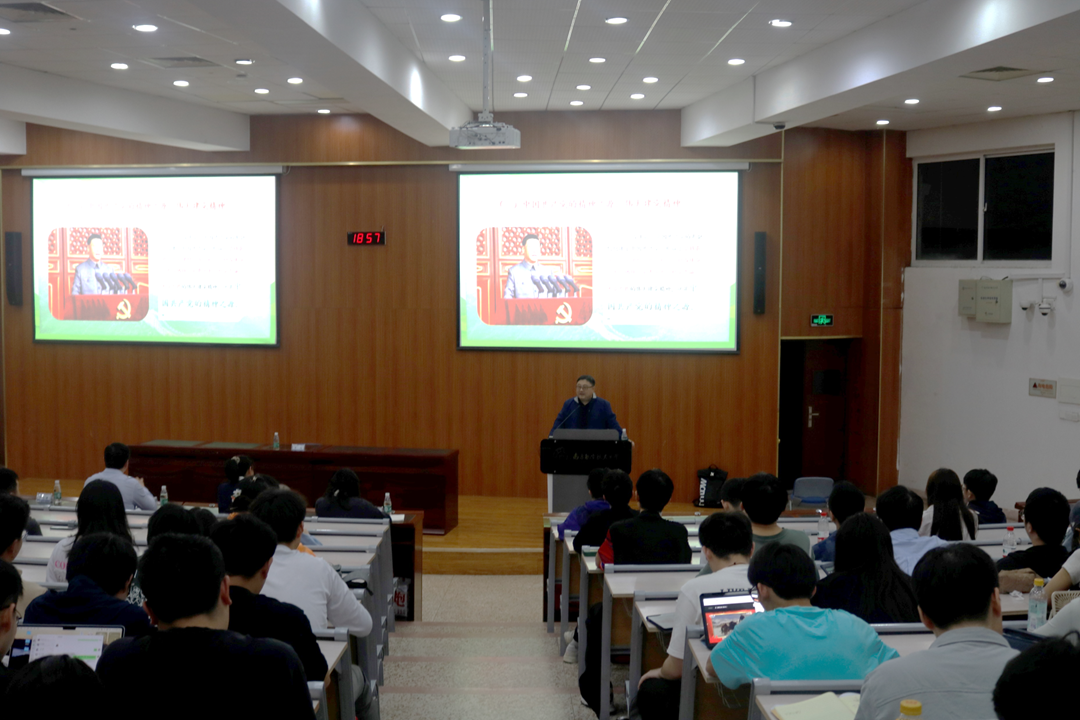 培训的首场报告邀请我校教学名师,团中央中国特色社会主义理论体系研究中心南航基地主任、特约研究员马克思主义澳门彩票有限公司 平旭教授,为青年学生讲授《弘扬以伟大建党精神为源头的中国共产党人精神谱系》。平旭教授以弘扬伟大建党精神为主题,阐释了伟大建党精神作为中国共产党人精神谱系源头的丰富内涵,介绍了精神谱系的构成。从四个方面解读中国共产党人在不同时期、不同地区伟大建党精神的内涵。遵循百年党史这一条主线,讲述了革命、建设、改革、新时代四个时期的典型精神,通过重温党史故事、了解党史人物,引申至不同时代南航人的南航精神,带学生们感悟共产党人信念坚定、百折不挠的奋斗精神,英勇斗争、不怕牺牲的奉献精神,从中国共产党人精神谱系感悟信念、汲取力量,在弘扬精神中攻坚克难,在传承血脉中开拓前行。