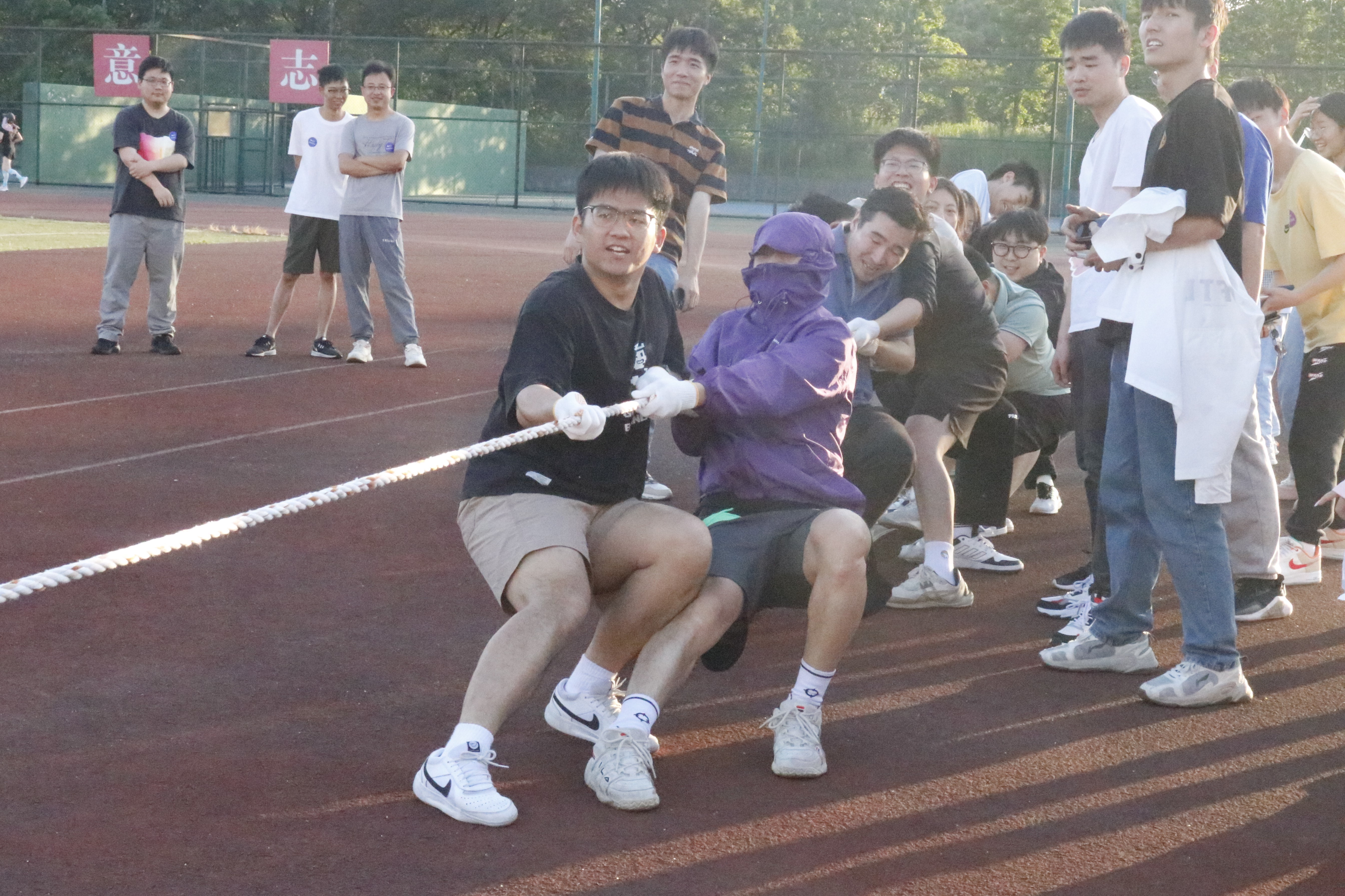 本次导学运动会设置五个比赛项目,共有四支队伍参加。参赛代表们首先在志愿者的带领下以瑜伽操的形式进行了充分热身。随后就进入了激烈紧张的比赛环节,过程中参赛队员热情高涨、斗志昂扬,与导师们团结协作完成趣味接力跑、一圈到底、五人六足折返跑、同心鼓颠球、团队拔河五个项目。最终ILWRT(激光焊接与再制造课题组)队获得了冠军。