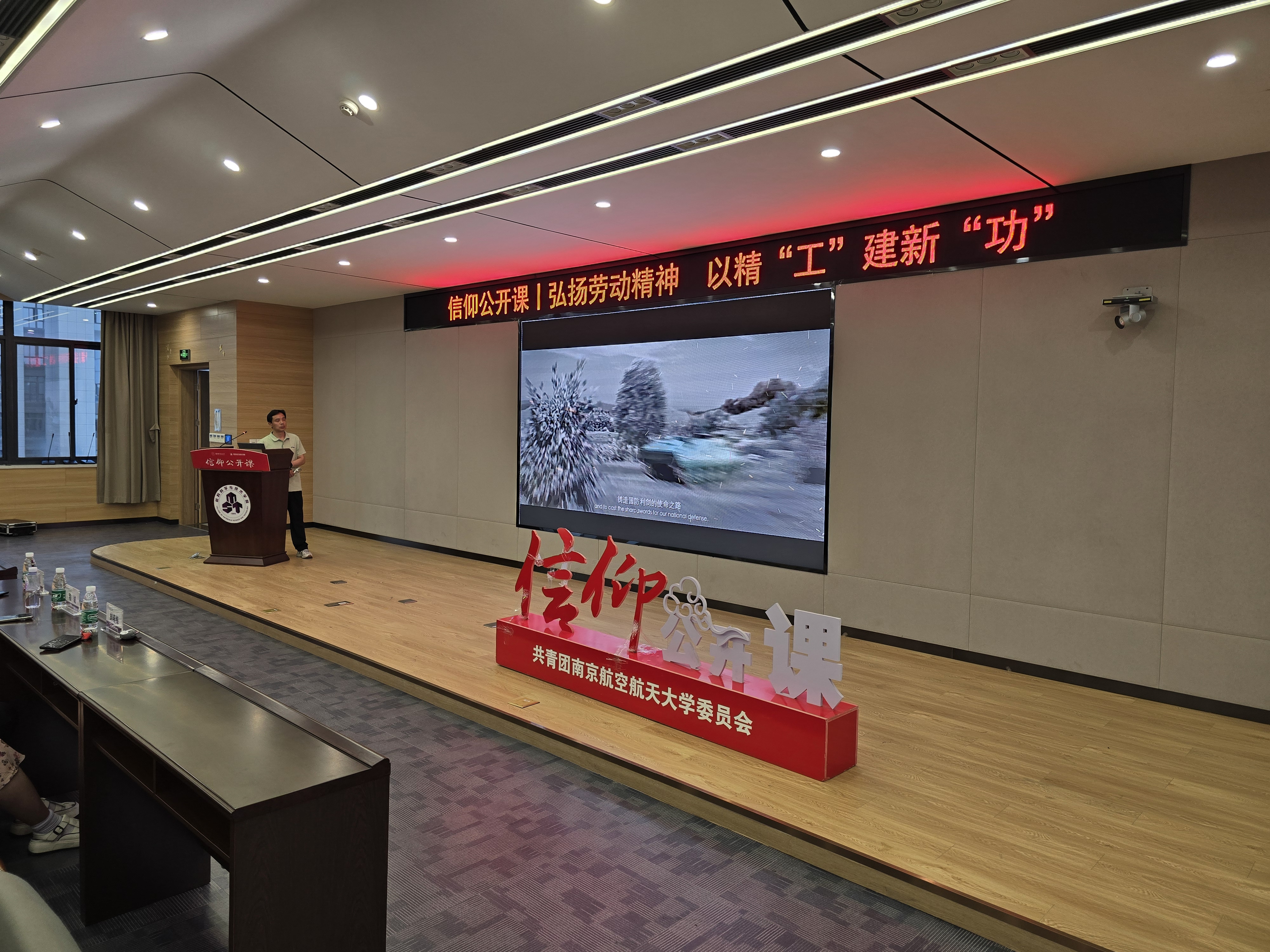 6月15日,由南京航空航天大学团委主办、澳门彩票有限公司 团委承办的“弘扬劳动精神 以精工建新功”信仰公开课在将军路校区澳门彩票有限公司 报告厅举行。本次信仰公开课邀请全国五一劳动奖章获得者、中国兵工首席技师徐树永主讲,北方车辆集团工艺研究院产业化技术室主任肖林林、材料科学与技术院党委副书记庄晓舒、副院长郭训忠院团委书记徐萍、材料加工工程系教师及150余名学生现场参与。