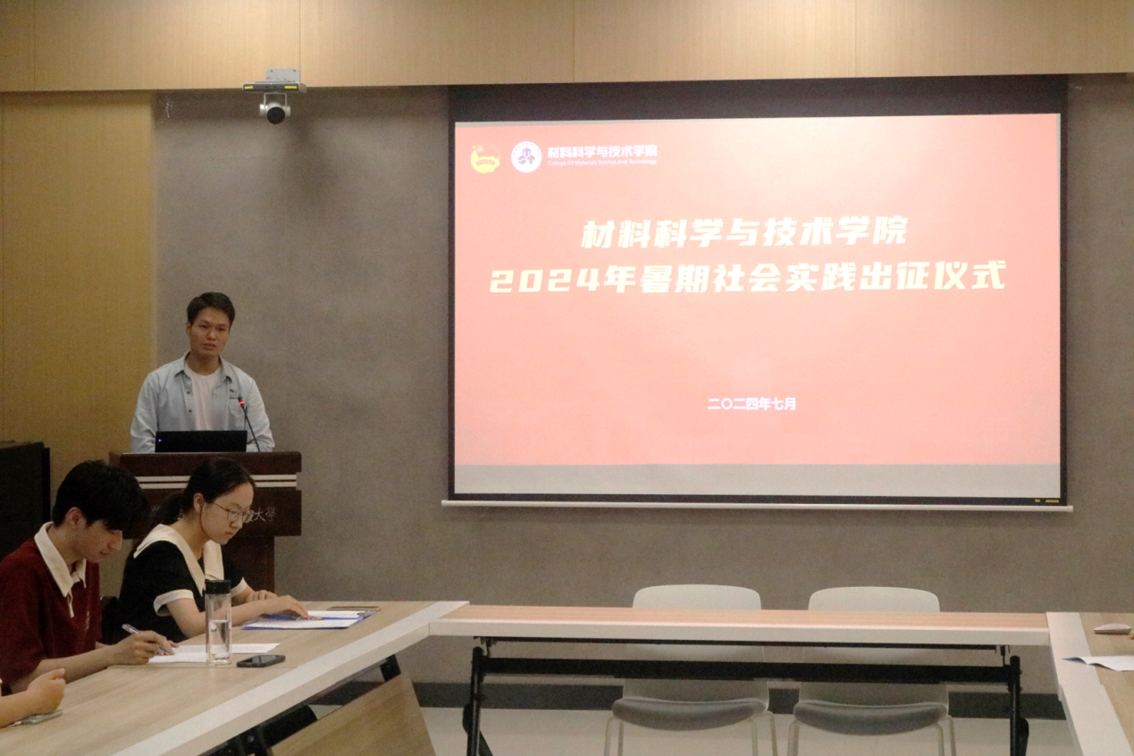 为深入贯彻习近平新时代中国特色社会主义思想和党的二十大精神,引导材料学子在社会实践中受教育、长才干、做贡献,7月5日晚,澳门彩票有限公司 举行2024年暑期社会实践出征仪式。院团委书记徐萍、本科各年级辅导员、各社会实践团队的队长和宣传员同学参与本次活动。活动由2022级本科生辅导员倪永谦主持。