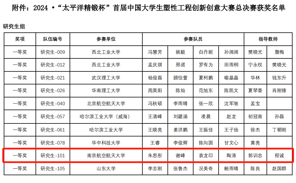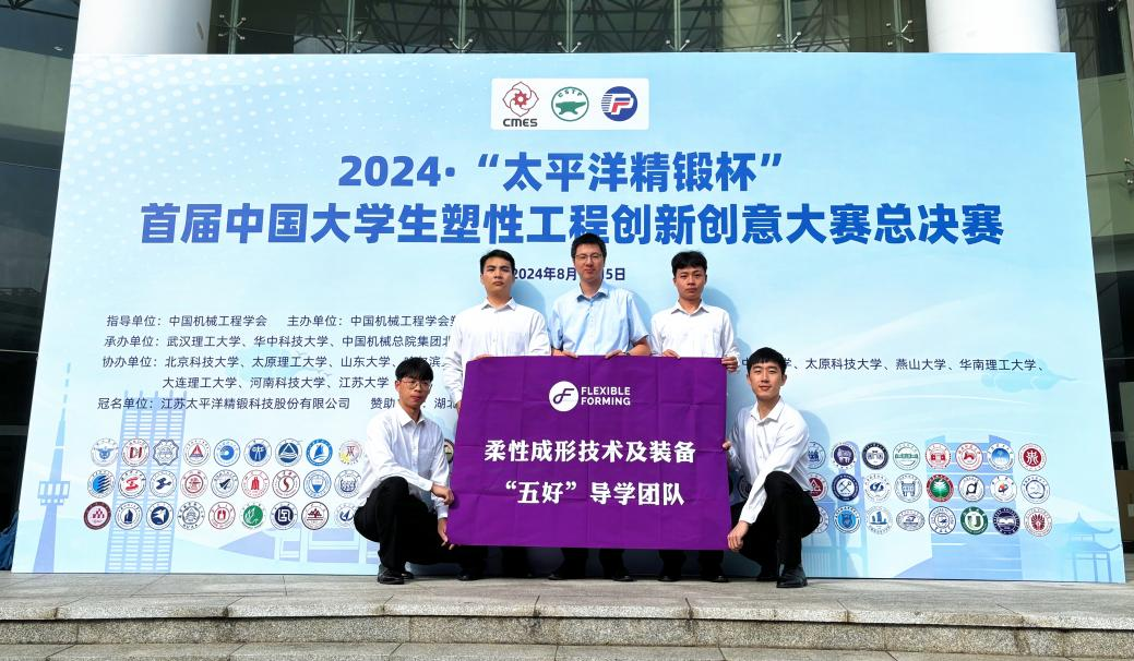2024年8月14日-15日,2024·“太平洋精锻杯”首届中国大学生塑性工程创新创意大赛总决赛圆满落幕,澳门彩票有限公司 柔性成形技术与装备团队于120支晋级总决赛队伍中脱颖而出,荣获首届中国大学生塑性工程创新创意大赛一等奖。
