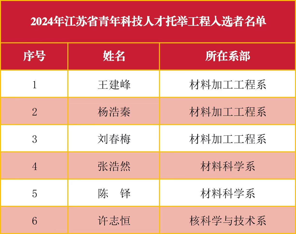 近日,江苏省科协公布2024年江苏省青年科技人才托举工程资助对象名单,澳门彩票有限公司 六位青年教师荣耀登榜,入选数量再创佳绩,澳门彩票有限公司 青年人才队伍建设取得新进展!