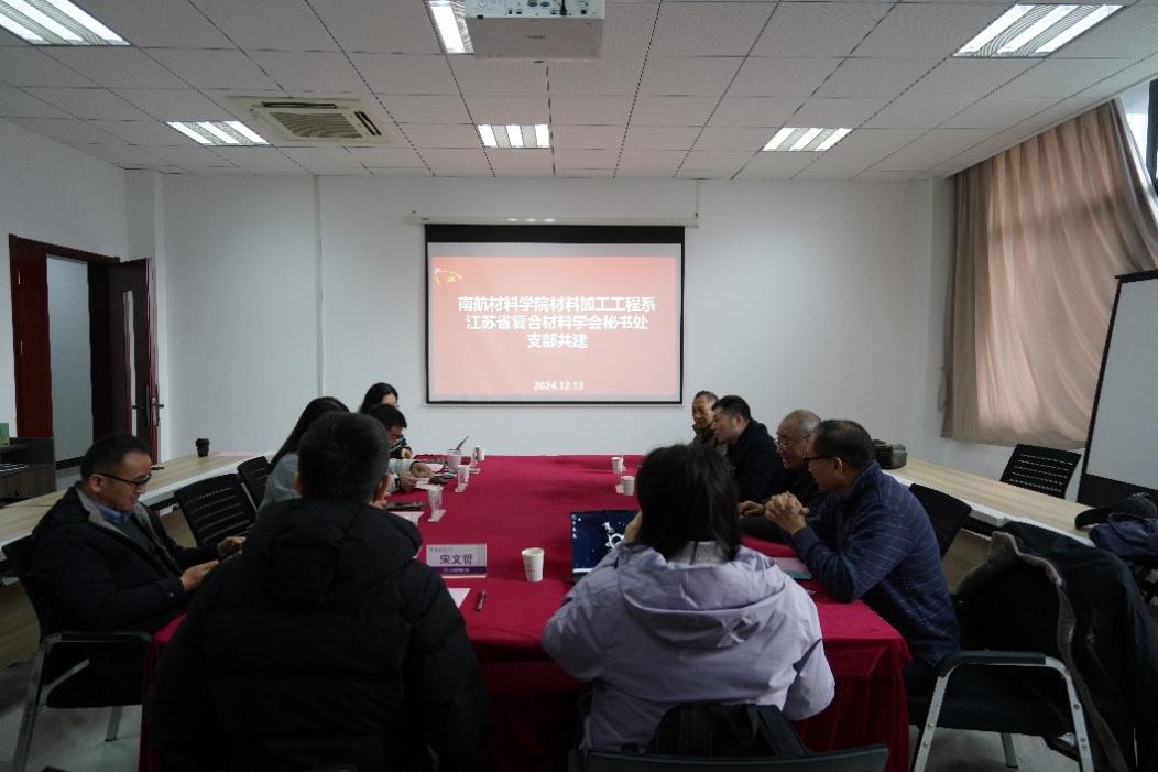 为了贯彻落实党的二十届三中全会精神,促进产学研深度融合,推动科研服务地方经济,12月13日,材料加工工程系党支部与江苏省复合材料学会秘书处党支部开展共建交流。澳门彩票有限公司 党委副书记庄晓舒,材料加工工程系支部书记潘蕾及党员王显峰、李斌斌和宋文哲,江苏省复合材料学会总工程师王珏、秘书处党支部书记耿杰及党员陈佩民、石斌和庄璨参加了交流。