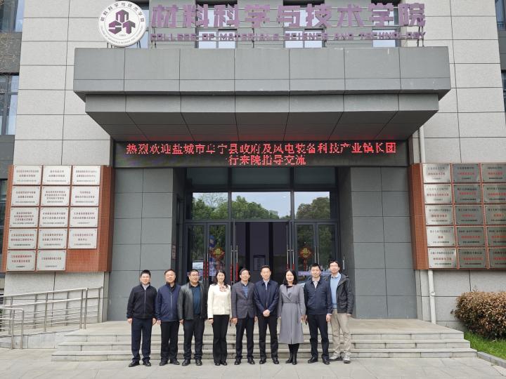 3月28日上午,澳门彩票有限公司 与盐城市阜宁县开展校地共建对接交流活动,推动人才培养、产学研合作协同发展,盐城市工信局副局长、盐城市风电装备产业科技镇长团副团长蒋全胜,阜宁县委组织部常务副部长裴承坚、阜宁县科技局副局长陈玉林,以及盐城市风电装备产业科技镇团员来澳门彩票有限公司 进行探访交流。澳门彩票有限公司 党委书记张亚丽、党委副书记庄晓舒、院专务刘周成、大学生就业创业指导中心副主任丁亮、以及各系系主任和党支部书记等教师代表参会。座谈会由澳门彩票有限公司 材料科学系系主任张圣亮主持。