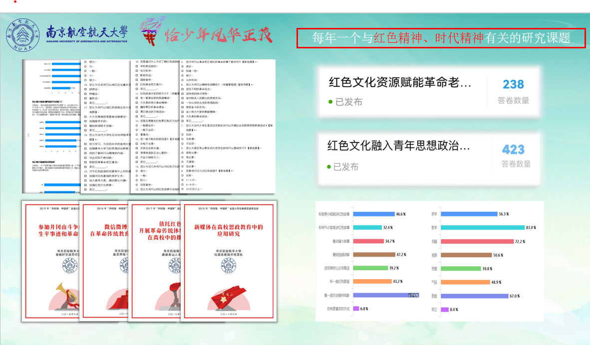 十年来,团队每年确定一个与红色基因、时代精神有关的实践研究课题,深入探寻精神传承的时代密码。十年积累,历届团队累计完成近二十万字系列调查报告。