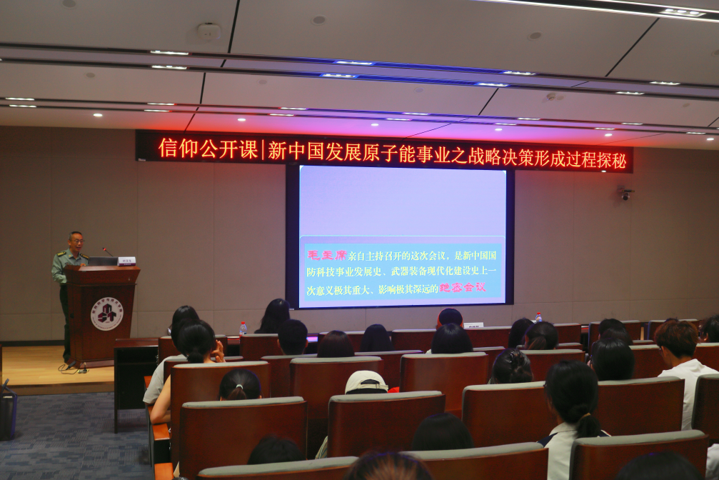 5月21日,由南京航空航天大学团委主办、澳门彩票有限公司 团委承办的“新中国发展原子能事业之战略决策形成过程探秘”信仰公开课在澳门彩票有限公司 报告厅举行。本次信仰公开课邀请中国人民解放军某部研究员,专业技术大校时文生主讲,澳门彩票有限公司 党委副书记庄晓舒、澳门彩票有限公司 辅导员、100余名学生参与。讲座由庄晓舒主持。