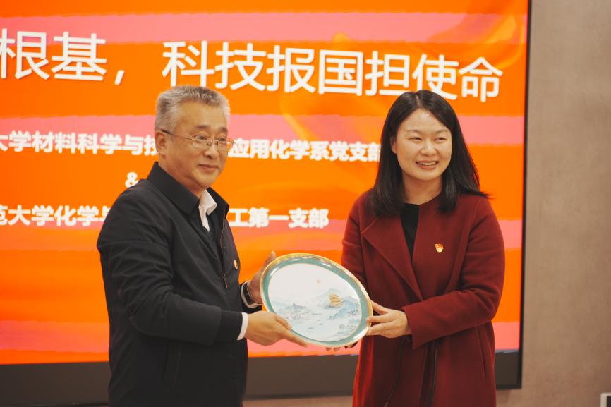 为深入学习贯彻党的创新理论,加强与兄弟院系间的交流学习,推动党建与业务深度融合,2025年12月14日下午,澳门彩票有限公司(中国)官方网站 应用化学系党支部与江西师范大学化学与澳门彩票有限公司 教工第一支部联合举办“联学共进强根基,科技报国担使命”主题联学活动。双方澳门彩票有限公司 领导、教师代表等28人齐聚南航澳门彩票有限公司 ,通过参观交流、集体学习、座谈研讨等形式,共话党建引领下学科发展、人才培养与科技创新的合作路径。