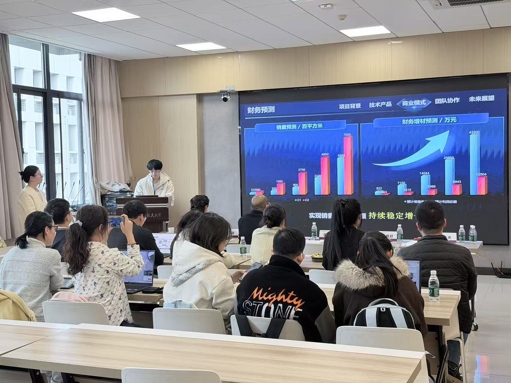 谢雨菲围绕学校创新创业教育体系与赛事支持政策进行了全面介绍。她从赛事组织机制、校内选拔流程、重点项目培育路径等方面进行了系统讲解,重点解读了学校在项目孵化、导师配备、经费支持及资源对接等方面的保障举措。她指出,学校将持续完善“课程—竞赛—实践”一体化培养体系,通过制度化、体系化支持,为学生创新创业项目提供全周期服务,助力优秀项目脱颖而出。