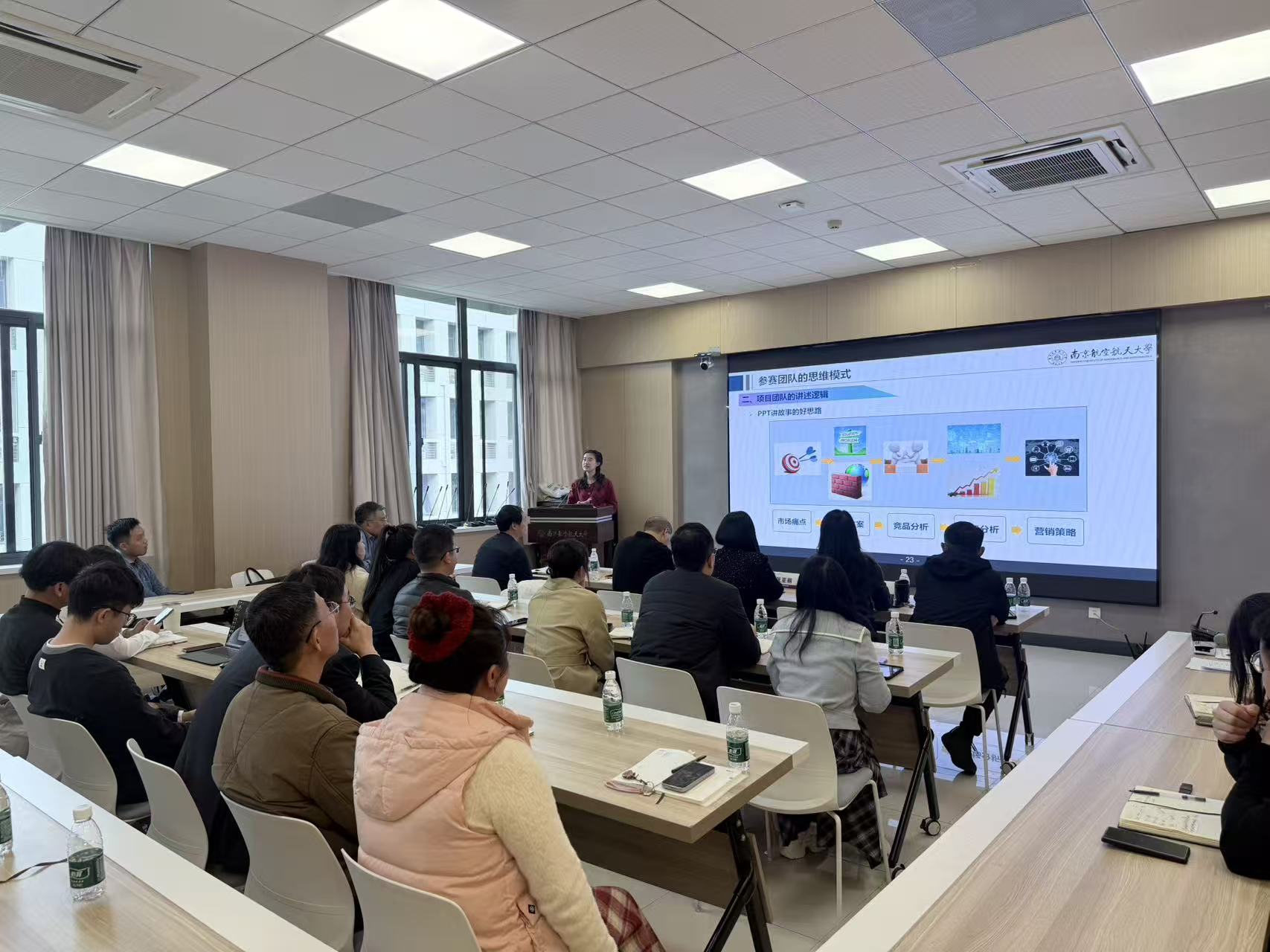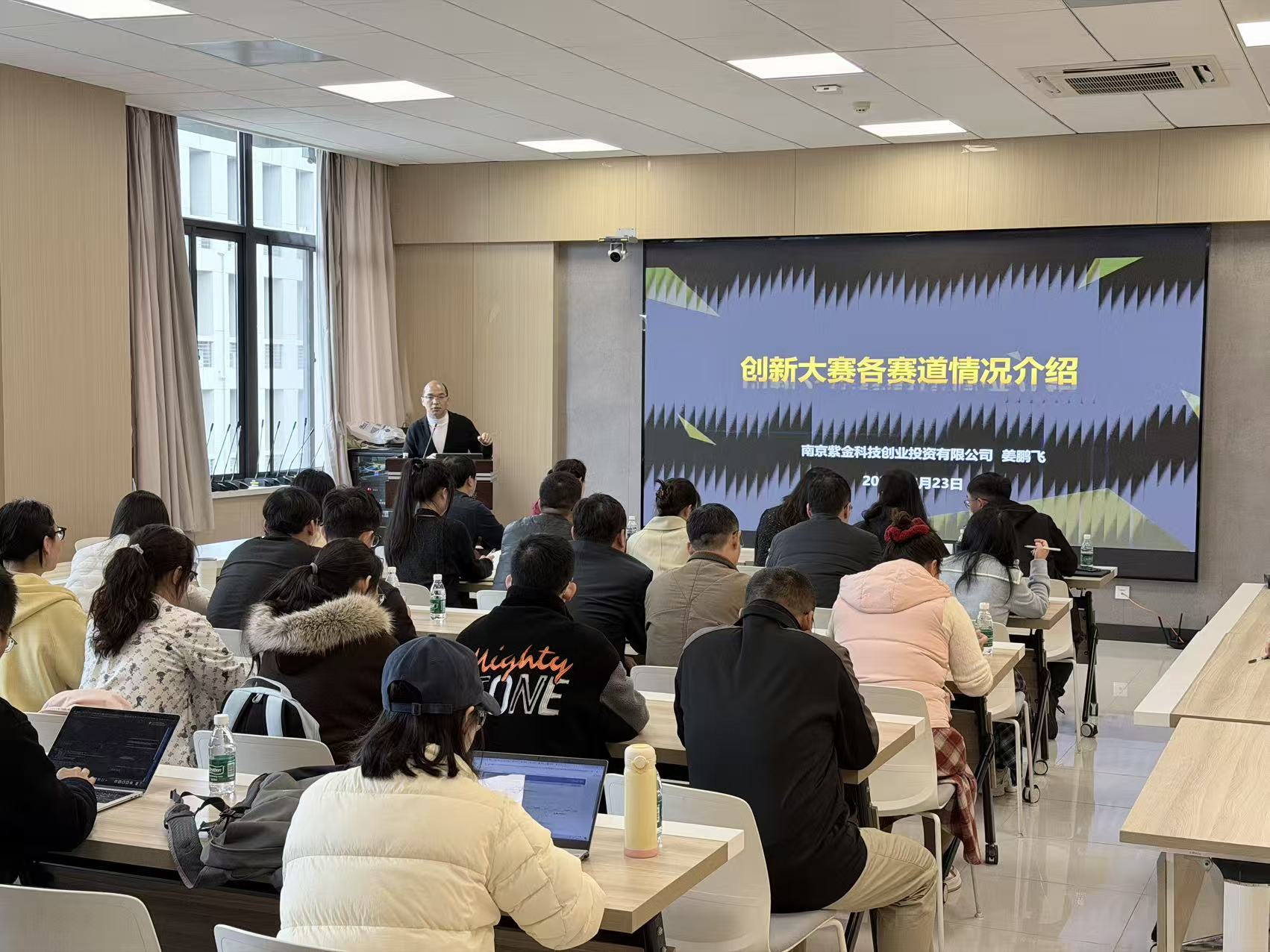 3月23日,澳门彩票有限公司 在东区材料楼B322A会议室举办中国国际大学生创新大赛项目专题辅导会。活动特邀南京市创新投资集团未来产业天使投资部总经理姜鹏飞作专题辅导,并邀请教务部创新创业教育办公室谢雨菲老师开展校内政策解读,围绕赛事理解、项目打磨与参赛支持等关键环节,为澳门彩票有限公司 教师提供系统化指导。澳门彩票有限公司 党委书记张亚丽、党委副书记庄晓舒、院长助理林开杰及耿长冉出席会议,会议由耿长冉主持。